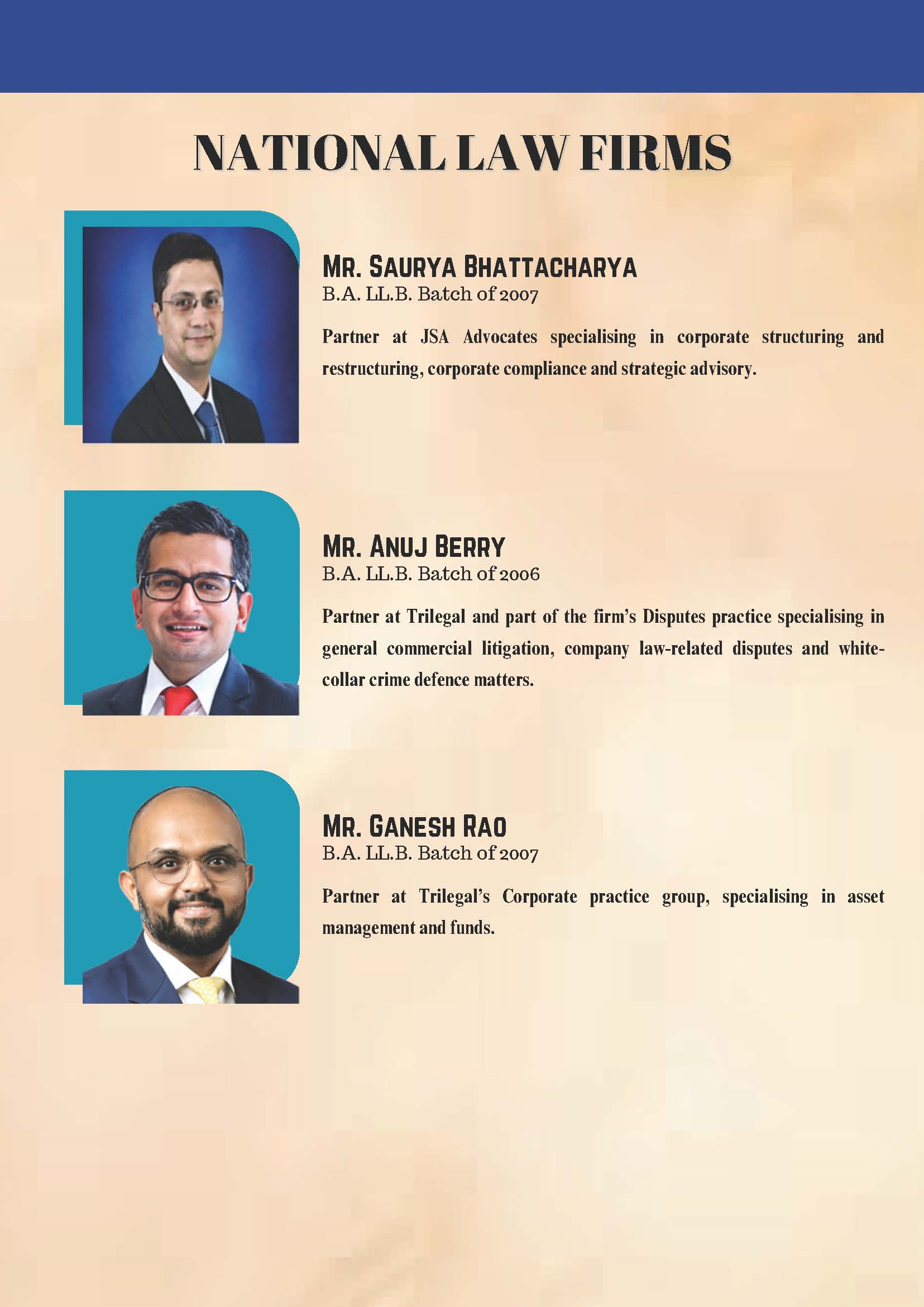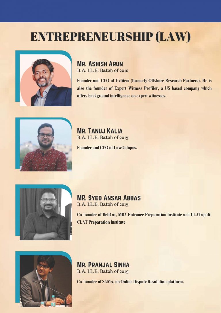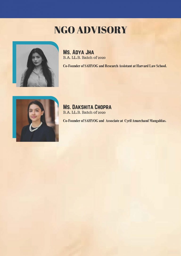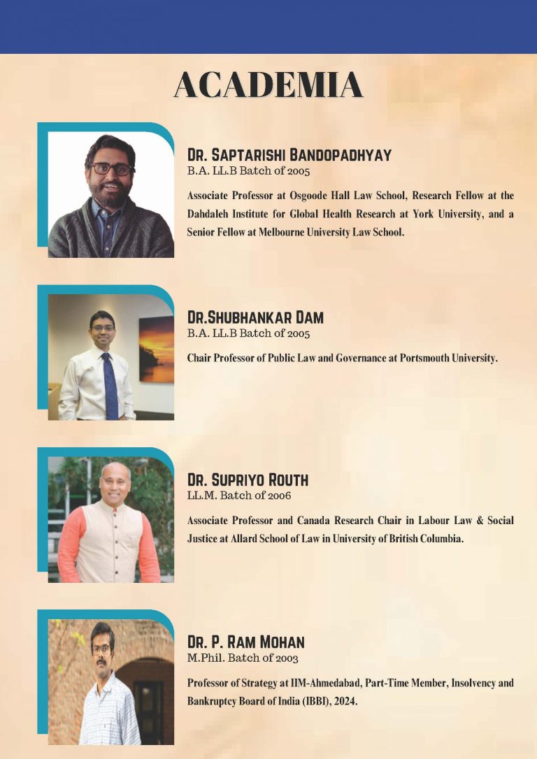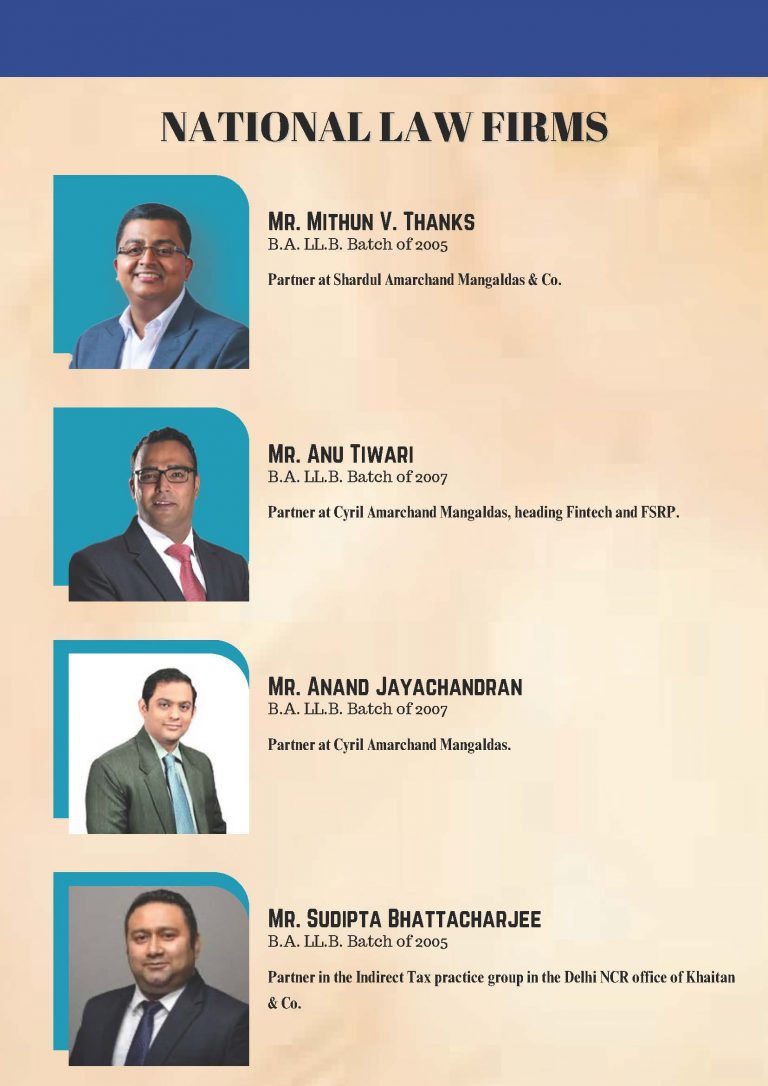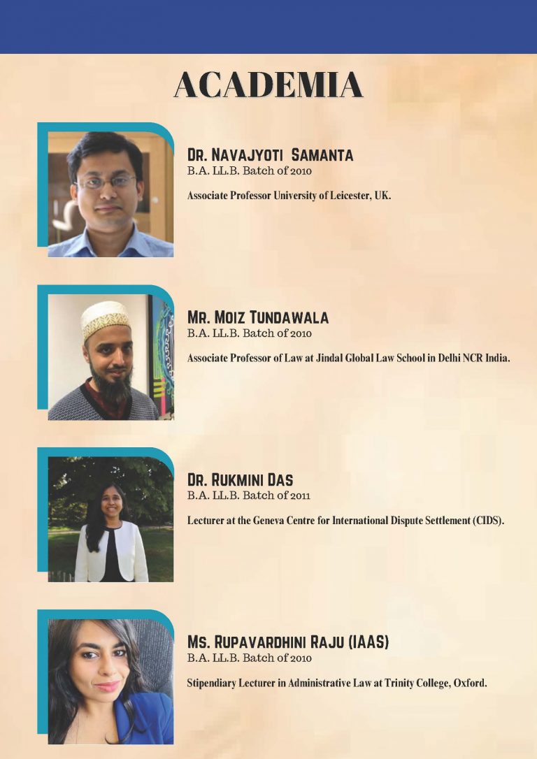 The Alumni Cell is a student run wing of the Student Juridical Association that facilitates meaningful engagement between the Alumni and the student body. It organizes talks, panel discussions and also facilitates alumni involvement in effective policy making in the University. It facilitates the Alumni Association in its executive programs like the National Vaccination Drive among other things. The body serves as the conduit to easy participation of the alumni in the functioning of their Alma Mater.
